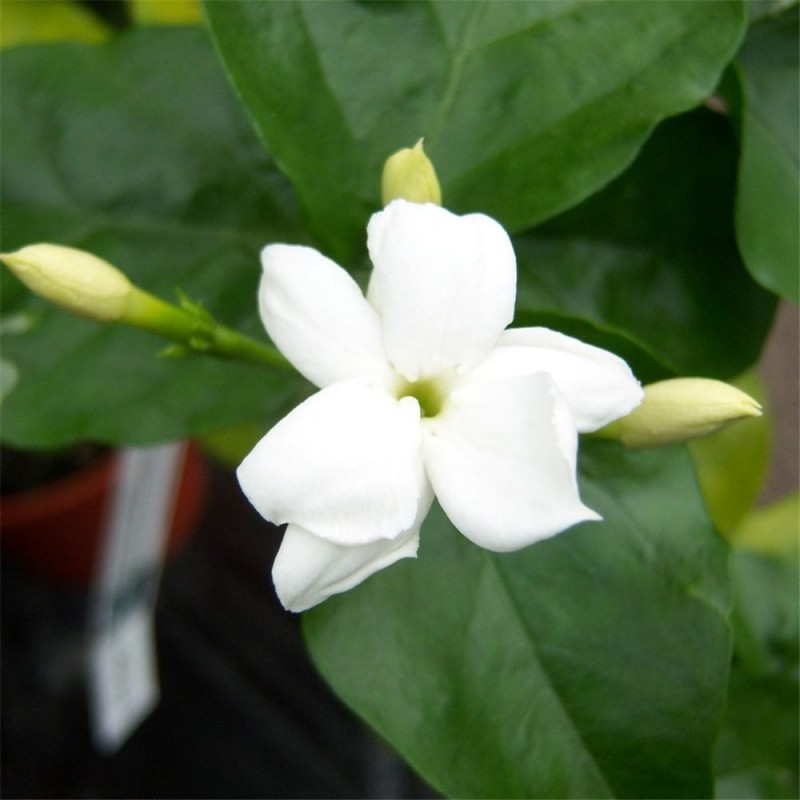 Arabian Jasmine. A twining climber with deep green leaves and clusters of fragrant, white flowers,particularly at night make this a desirable conservatory plant. Keep above 4C in good light. Evergreen. 12cm pot young plants for growing on.