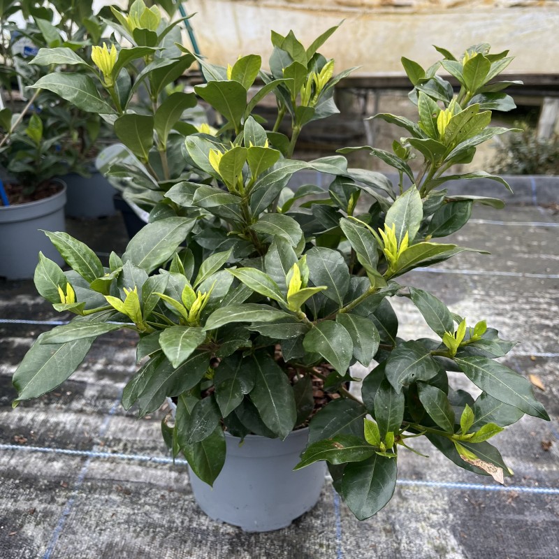 A New Hardy Gardenia. An evergreen shrub that bears strongly perfumed exotic looking white star-shaped flowers in the summerIdeal for containers and sheltered sunny garden borders with well drained soil.