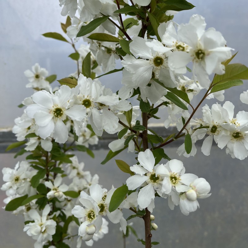 Blushing Pearl bears the most beautiful white buds flushed pink that open to show pearly white star shaped flowers in May and June. A deciduous shrub - Blushing Pearl is more compact than other varieties of Exochorda but is highly floriferous bearing masses of flower covering the branches. Suitable for beds and borders or pots and containers. 4ltr pot