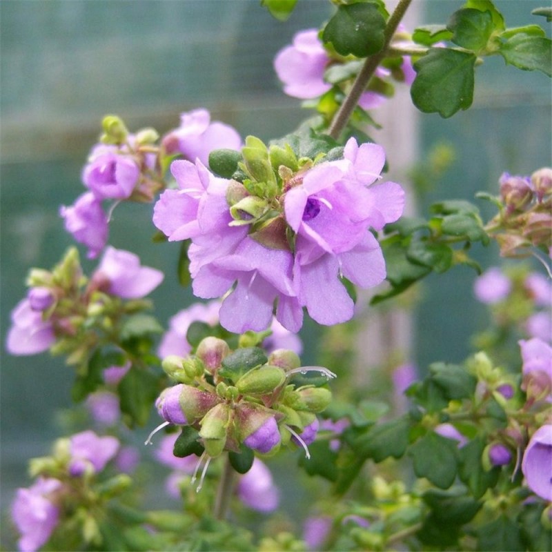 Round Leaved Mint Bush. A bushy shrub with rounded dark green scented leaves. Pretty bell-shaped, purple to lilac-purple flowers from May to June. Evergreen. Sheltered Site. 2-3ltr pot